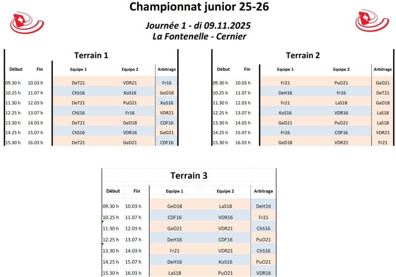 1ère journée Dimanche 9 novembre 2025 La Fontenelle, Cernier Plan - 1ère journée