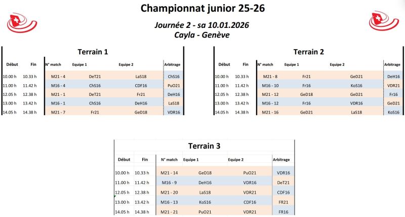 2ème journée Samedi 10 janvier 2026 C.O. Cayla, Genève Plan - 2ème journée